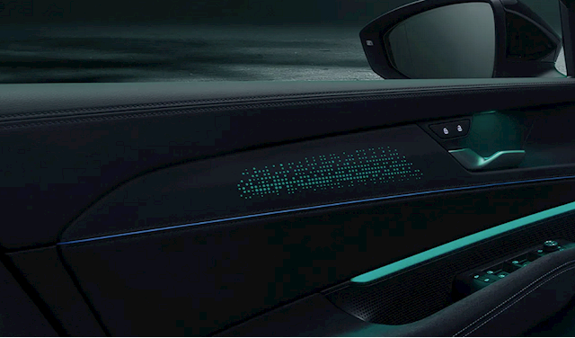 车辆尾部使用最新的点阵式贯穿尾灯设计语言,内部采用了几何主题灯组元素有序排列,搭配熏黑处理,并提供6种离回家迎宾动画灯效以及流水转向效果,提高情绪价值。