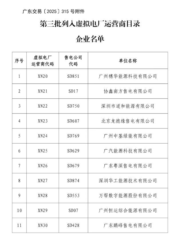 近日,广东电力交易中心发出通知,公布列入第三批虚拟电厂运营商目录企业名单,广州恒运综合能源有限公司成功上榜,成为具备资质从事该项业务的售电公司。